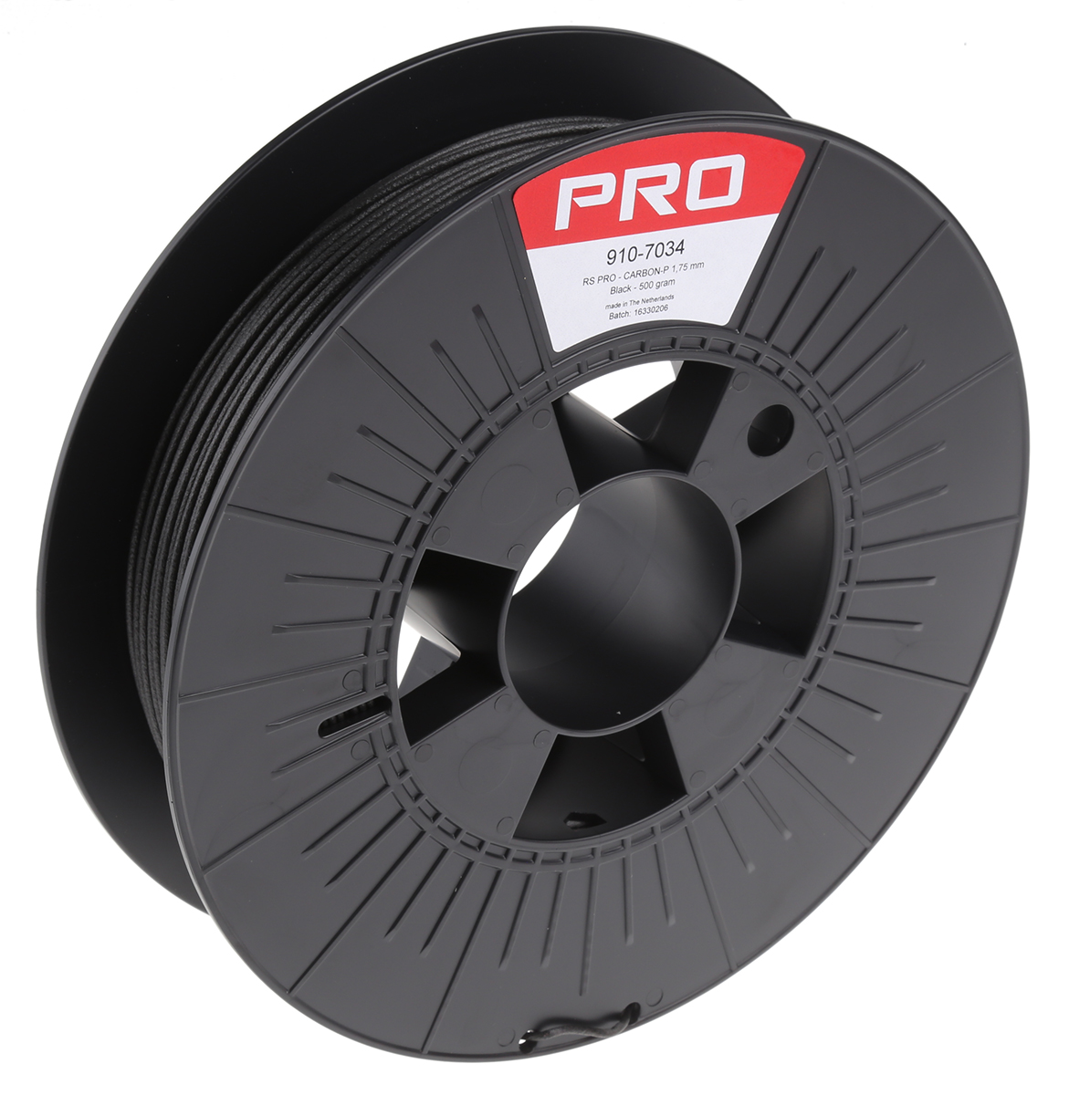 This is 1.75mm Black CARBON-P 3D Printer Filament 500g manufactured by RS Pro. The manufacturer part number is 910-7034. Its diameter is 1.75mm. The typical product's weight is 500g.