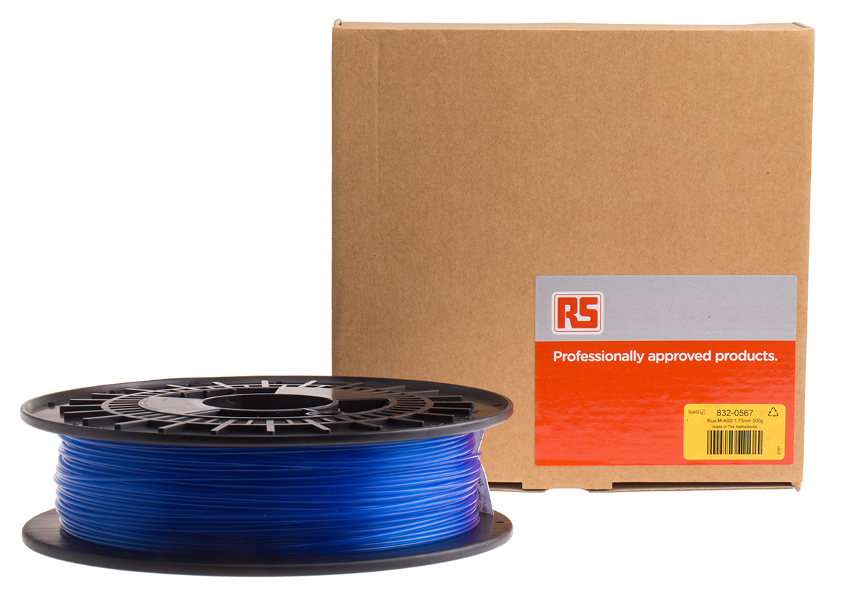 This is 1.75mm Blue M-ABS 3D Printer Filament 500g manufactured by RS Pro. The manufacturer part number is 832-0567. Its diameter is 1.75mm. The typical product's weight is 500g.
