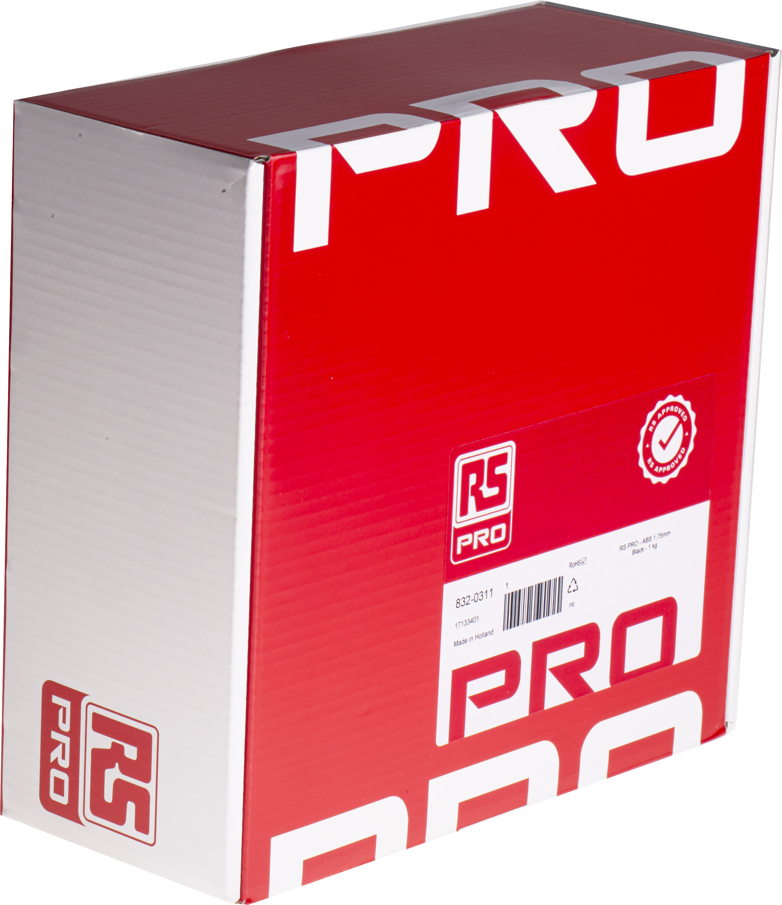 This is 1.75mm Black ABS 3D Printer Filament 1kg manufactured by RS Pro. The manufacturer part number is 832-0311. Its diameter is 1.75mm. The typical product's weight is 1kg.