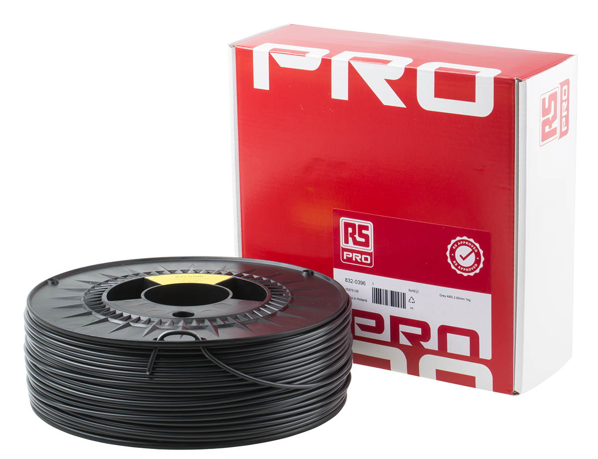 This is 2.85mm Grey ABS 3D Printer Filament 1kg manufactured by RS Pro. The manufacturer part number is 832-0396. Its diameter is 2.85mm. The typical product's weight is 1kg.