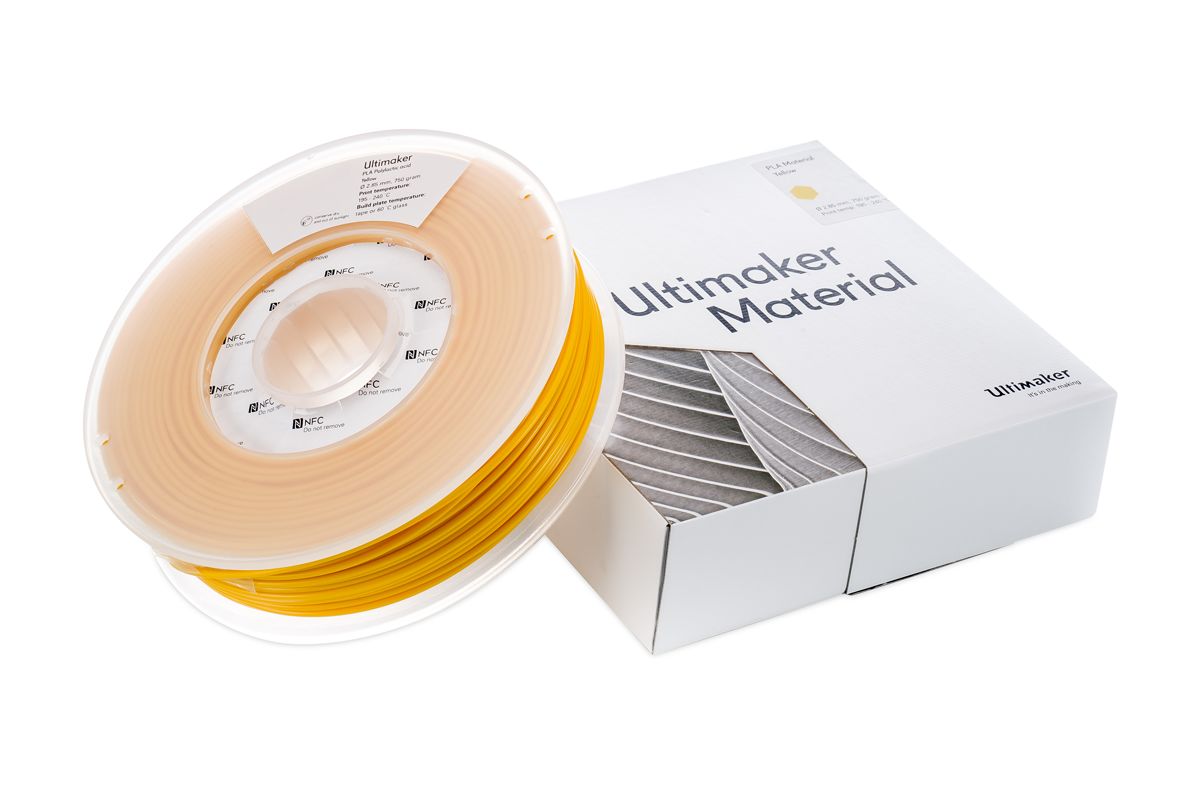 This is 2.85mm Yellow PLA 3D Printer Filament 750g manufactured by Ultimaker. The manufacturer part number is 1619. Its diameter is 2.85mm. The typical product's weight is 750g.