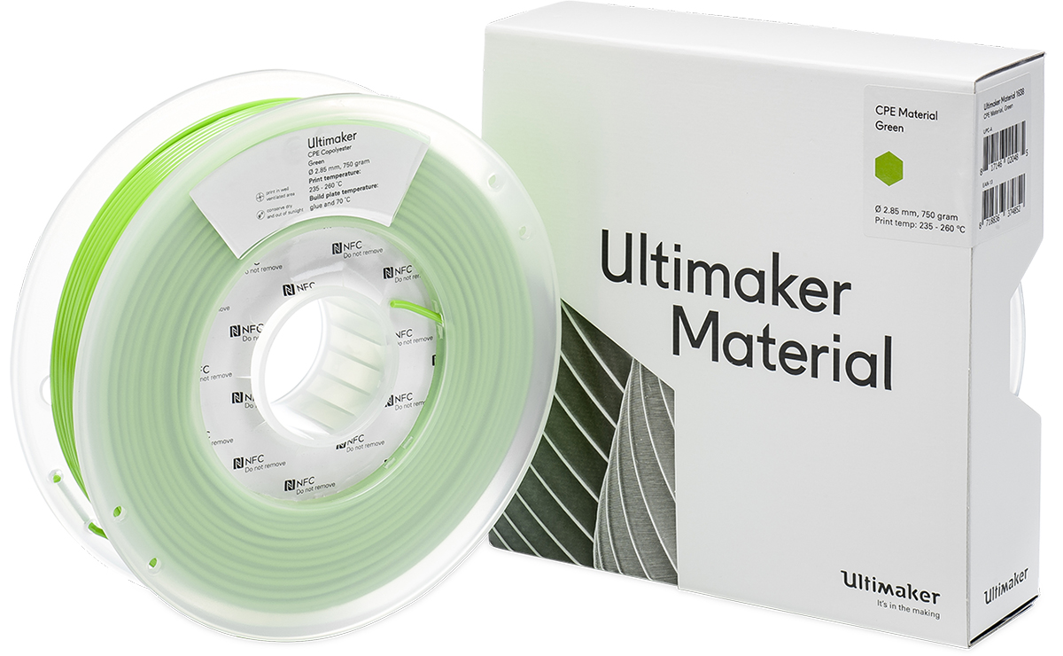 This is 2.85mm Green Co-Polyester 3D Printer Filament 750g manufactured by Ultimaker. The manufacturer part number is 1638. Its diameter is 2.85mm. The typical product's weight is 750g.