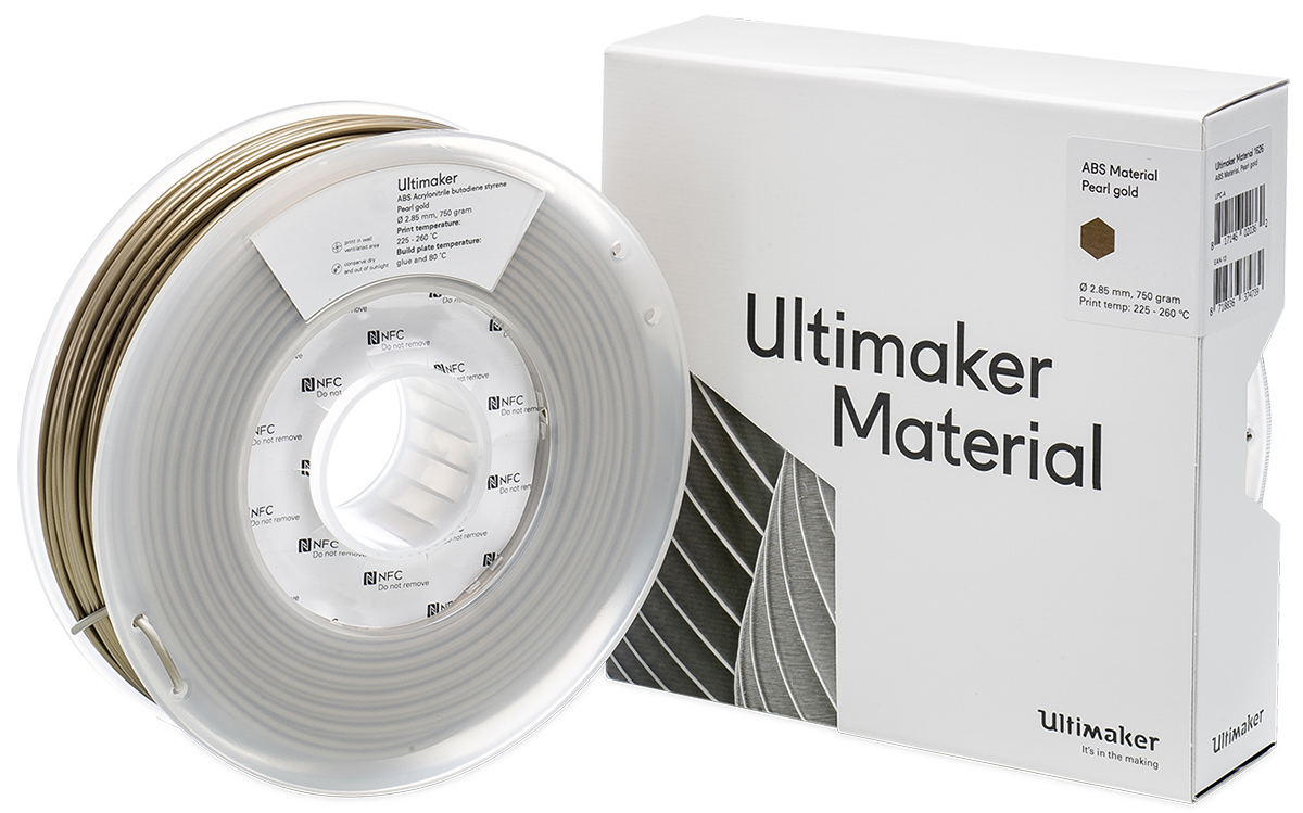 This is 2.85mm Gold ABS 3D Printer Filament 750g manufactured by Ultimaker. The manufacturer part number is 1626. Its diameter is 2.85mm. The typical product's weight is 750g.