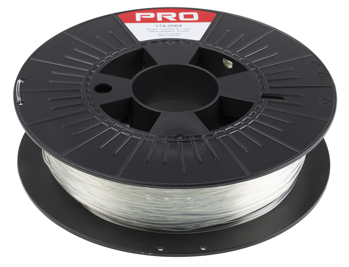 This is 1.75mm Transparent 3D Printer Filament 500g manufactured by RS Pro. The manufacturer part number is 174-0064. Its diameter is 1.75mm. The typical product's weight is 500g.