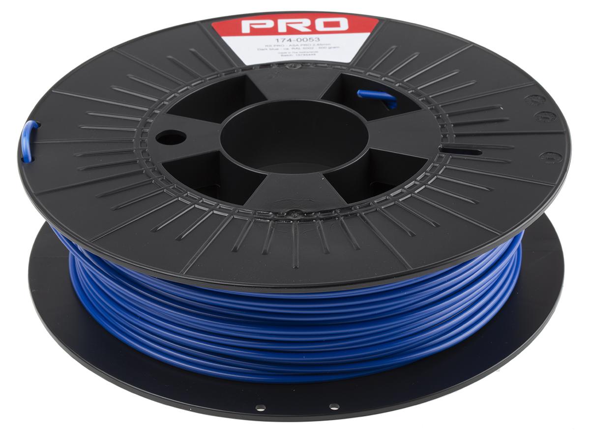 This is 2.85mm Blue 3D Printer Filament 500g manufactured by RS Pro. The manufacturer part number is 174-0053. Its diameter is 2.85mm. The typical product's weight is 500g.