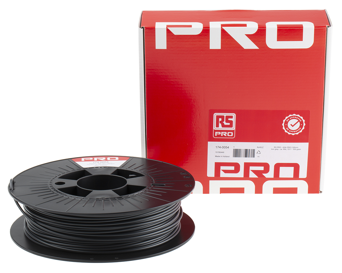 This is 2.85mm Grey 3D Printer Filament 500g manufactured by RS Pro. The manufacturer part number is 174-0054. Its diameter is 2.85mm. The typical product's weight is 500g.