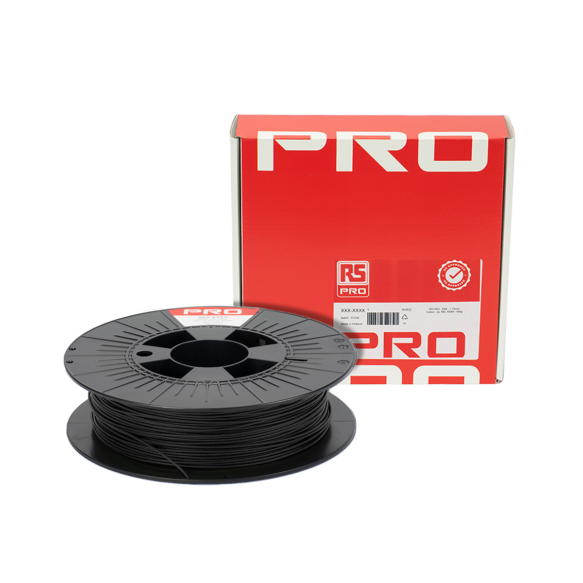 This is MATTE PLA 175mm Black 500 gram manufactured by RS PRO. The manufacturer part number is 183-0242. Its diameter is 1.75mm. The typical product's weight is 500g.