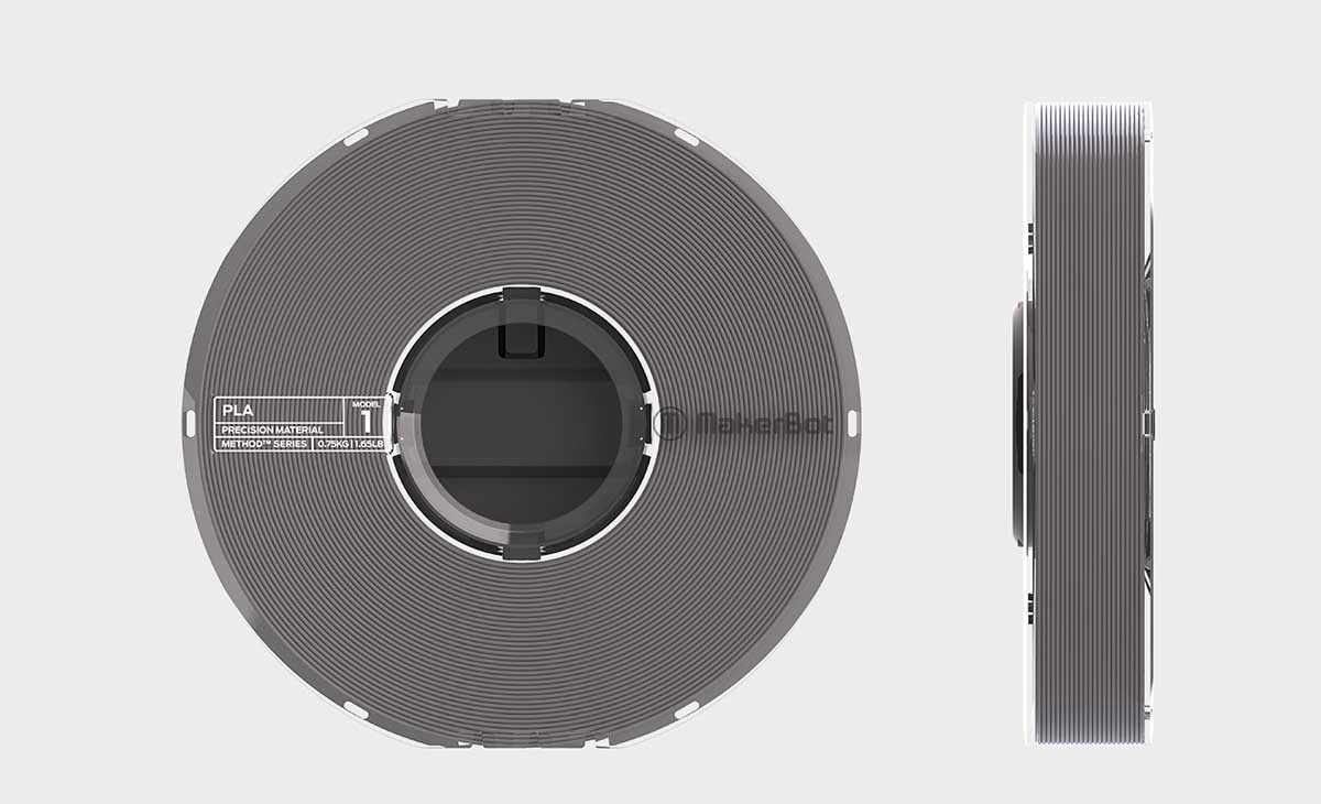 This is PLA Precision Material Cool Grey manufactured by MakerBot. The manufacturer part number is 375-0006A. Its diameter is 1.75mm. The typical product's weight is 750g.