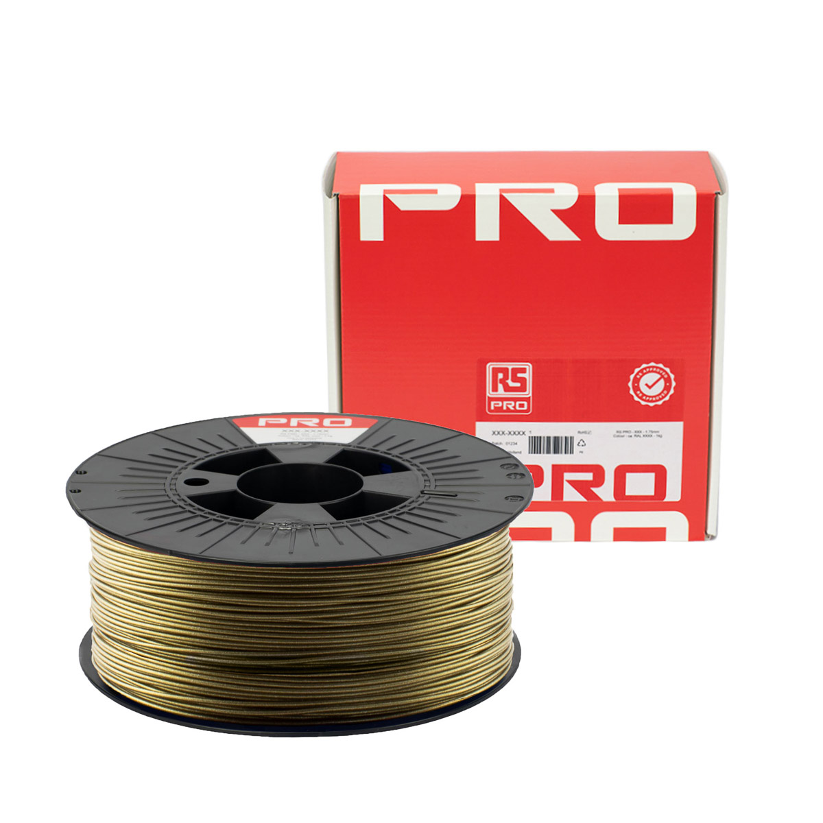This is 1.75mm Gold PLA Glitter 3D Printer Filament 1kg manufactured by RS PRO. The manufacturer part number is 190-1967. Its diameter is 1.75mm. The typical product's weight is 1kg.