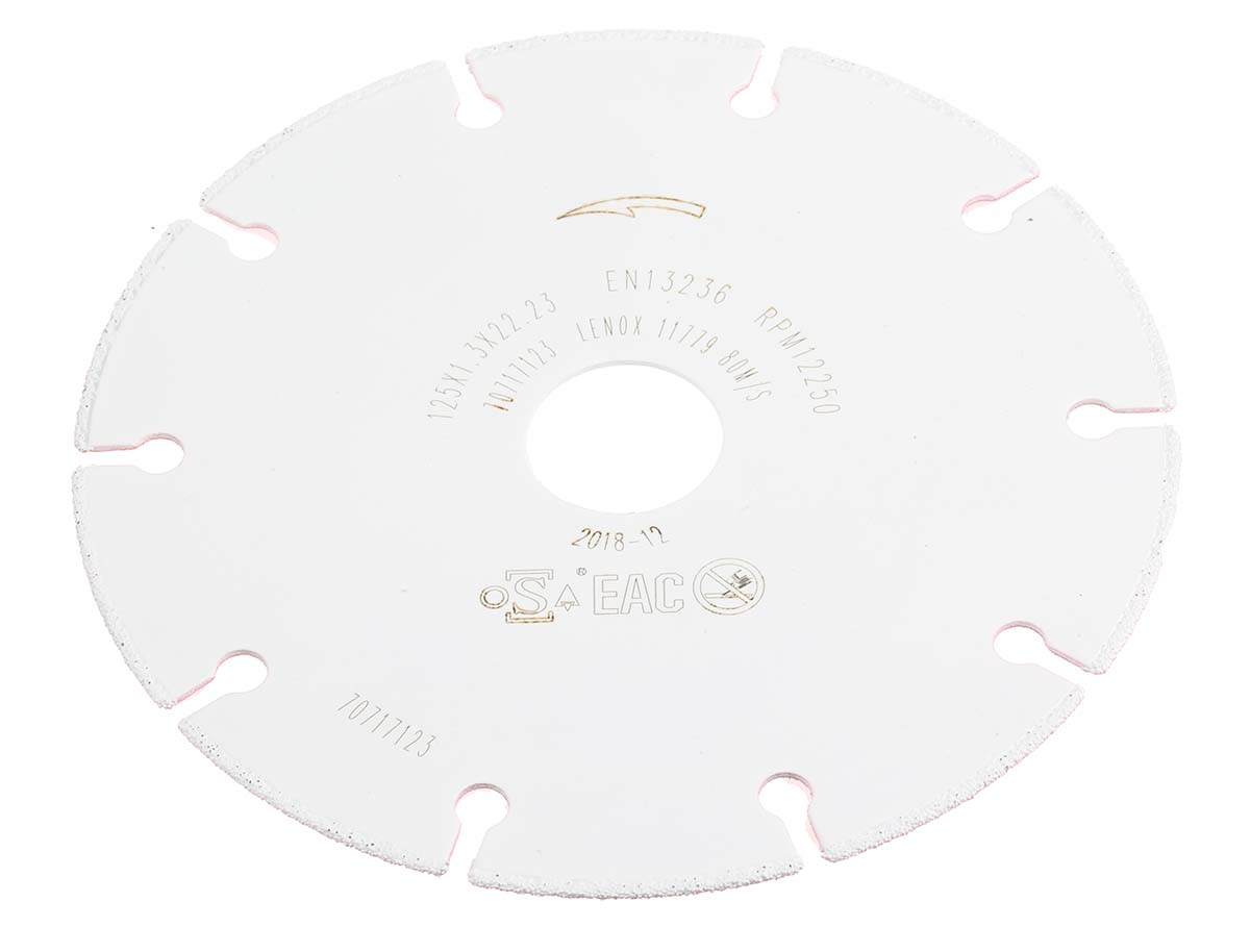 This is Metalmax cutoff wheel 125mm manufactured by Lenox. The manufacturer part number is 2030866. It is 1.3mm thick. It is manufactured from rugged aluminium oxide abrasive materials.