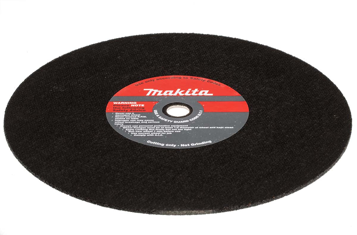 This is 300mm x 3mm metal cutting disc manufactured by Makita. The manufacturer part number is P-24474. It is 3mm thick. It is manufactured from rugged aluminium oxide abrasive materials.