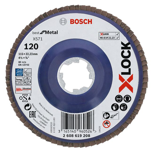 This is S/FlapDisc X-LOCK 115mm G 120 X571 Metal manufactured by Bosch. The manufacturer part number is 2608619208. The product x-lock, is a highly preferred choice for users.