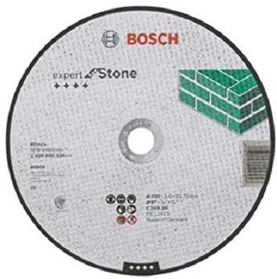 This is Aluminium Oxide Cutting Disc 230mm x 3mm Thick P24 Grit manufactured by Bosch. The manufacturer part number is 2608600326. It is 3mm thick. It is manufactured from rugged aluminium oxide abrasive materials.
