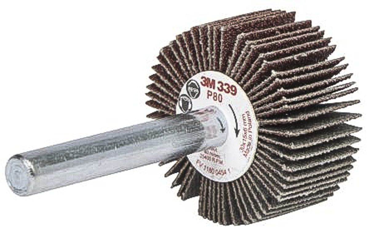 This is Aluminium Oxide Flap Wheel P80 Grit 50mm x 20mm x 6mm manufactured by 3M. The manufacturer part number is FC110075700. Its diameter is 50mm. It is manufactured from rugged aluminium oxide abrasive materials.
