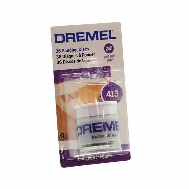 This is manufactured by Dremel. The manufacturer part number is 413. It is assigned with possible HTSUS value of 6805.30.1000. It is shipped in retail package. It has a classic purple colour. Its typical moisture sensitivity level is not applicable. Abrasive Grade Info: fine. It is manufactured from rugged emery abrasive materials. While its abrasive grit is 240. The product is designated with the ear99 code number