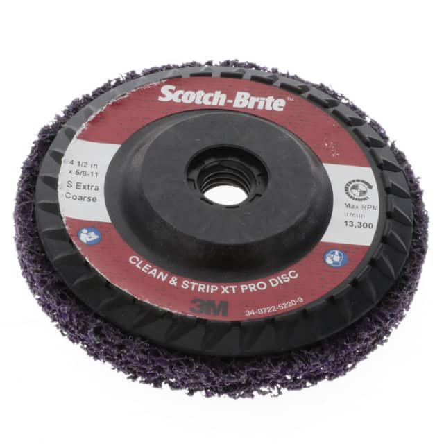 This is manufactured by 3M. The manufacturer part number is 00638060055748. It is assigned with possible HTSUS value of 6805.30.1000. The product is not applicable. Abrasive Grade Info: extra coarse. It is manufactured from rugged silicon carbide abrasive materials. It comes in disc configuration. It is shipped in box. Its typical moisture sensitivity level is not applicable. Its diameter is 4.500" (114.30mm). It has a classic purple colour. The product scotch-brite™, is a highly preferred choice for users. Moreover, it corresponds to 6380600, a base product number of the product. The product is designated with the ear99 code number