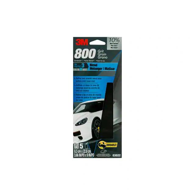 This is manufactured by 3M. The manufacturer part number is 03022. It is assigned with possible HTSUS value of 6805.20.0000. Furthermore, the product is 3.67" (93.14mm) wide. While its abrasive grit is p800. It is manufactured from rugged silicon carbide abrasive materials. It comes in sandpaper configuration. The product is widely employed in sanding. It is shipped in bulk. Its typical moisture sensitivity level is not applicable. Its accurate length is 9.00" (228.60mm). It has a long 3 weeks standard lead time. It has a classic black colour. The product wetordry™, is a highly preferred choice for users. The product is designated with the ear99 code number