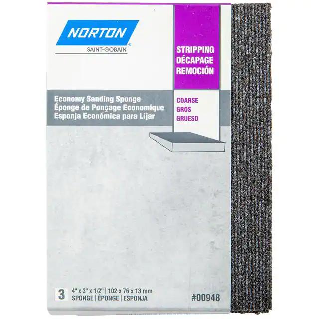 This is manufactured by Norton. The manufacturer part number is 07660700948. It is shipped in bulk. Its accurate length is 4.00" (101.60mm). Abrasive Grade Info: coarse. Furthermore, the product is 3.00" (76.20mm) wide. The product is widely employed in general purpose. It is manufactured from rugged aluminum oxide abrasive materials. The product is designated with the ear99 code number