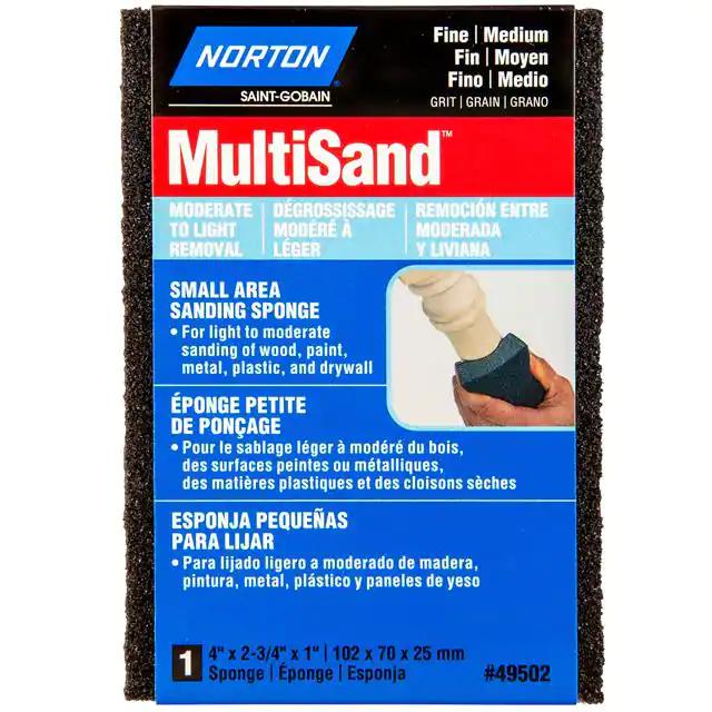 This is manufactured by Norton. The manufacturer part number is 07660749502. It is shipped in bulk. Its accurate length is 4.00" (101.60mm). Abrasive Grade Info: fine/medium. Furthermore, the product is 2.75" (69.85mm) wide. The product is widely employed in general purpose. It is manufactured from rugged aluminum oxide abrasive materials. The product is designated with the ear99 code number