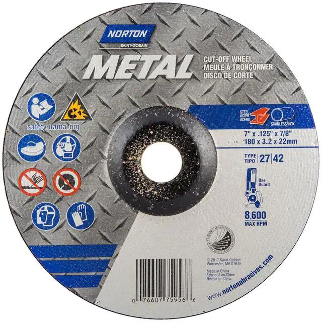 This is manufactured by Norton. The manufacturer part number is 07660775956. Its diameter is 7.00" (177.80mm). It is shipped in bulk. Abrasive Grade Info: extra coarse. The product is widely employed in general purpose. The product is designated with the ear99 code number