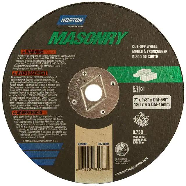 This is manufactured by Norton. The manufacturer part number is 07660789088. Its diameter is 7.00" (177.80mm). It is shipped in bulk. While its abrasive grit is 24. Abrasive Grade Info: extra coarse. The product is widely employed in general purpose. The product is designated with the ear99 code number