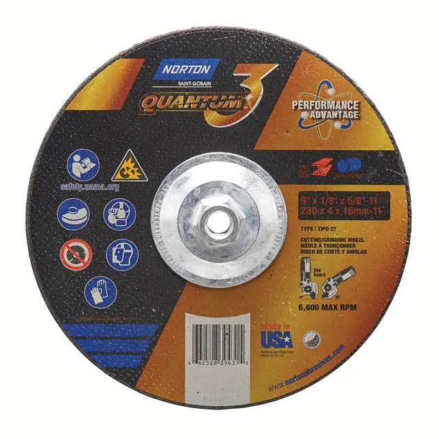 This is manufactured by Magellan Distribution. The manufacturer part number is 66252839431. Its diameter is 9.00" (228.60mm). While its abrasive grit is 24. It is shipped in bulk. It has a classic black colour. Abrasive Grade Info: coarse. Furthermore, the product is 0.13" (3.18mm) wide. The product is widely employed in general purpose. It is manufactured from rugged ceramic alumina abrasive materials. It comes in depressed center wheels configuration. The product is designated with the ear99 code number