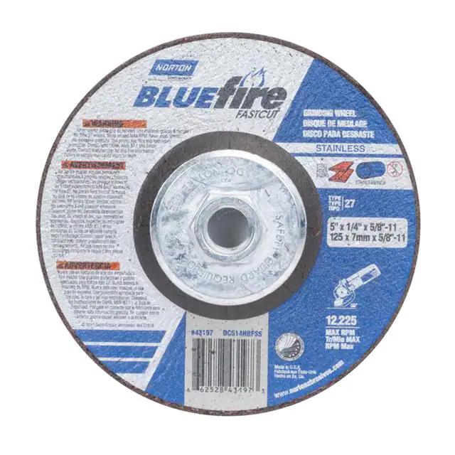 This is manufactured by Norton. The manufacturer part number is 66252843197. Its diameter is 5.00" (127.00mm). It is shipped in bulk. While its abrasive grit is 24. Abrasive Grade Info: extra coarse. The product is widely employed in general purpose. The product is designated with the ear99 code number