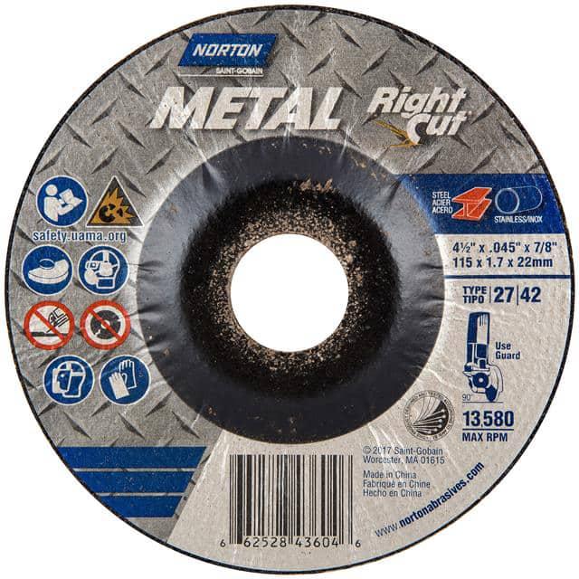 This is manufactured by Norton. The manufacturer part number is 66252843604. Its diameter is 4.50" (114.30mm). It is shipped in bulk. While its abrasive grit is 36. Abrasive Grade Info: coarse. The product is widely employed in general purpose. The product is designated with the ear99 code number