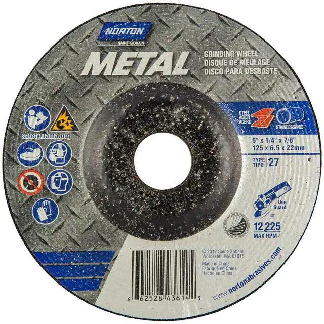 This is manufactured by Norton. The manufacturer part number is 66252843614. Its diameter is 5.00" (127.00mm). It is shipped in bulk. While its abrasive grit is 24. Abrasive Grade Info: extra coarse. The product is widely employed in general purpose. The product is designated with the ear99 code number