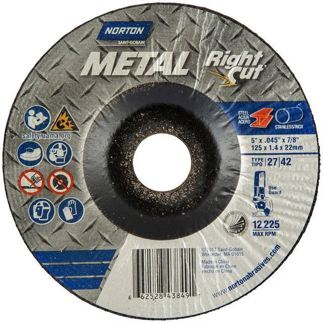 This is manufactured by Norton. The manufacturer part number is 66252843849. Its diameter is 5.00" (127.00mm). It is shipped in bulk. While its abrasive grit is 24. Abrasive Grade Info: extra coarse. The product is widely employed in general purpose. The product is designated with the ear99 code number
