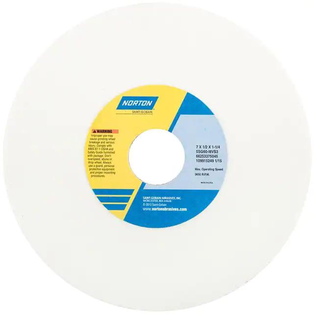 This is manufactured by Norton. The manufacturer part number is 66253375050. Its diameter is 7.00" (177.80mm). It is shipped in bulk. While its abrasive grit is 46. Abrasive Grade Info: coarse. The product is widely employed in general purpose. The product is designated with the ear99 code number