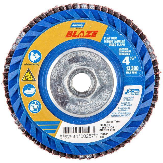 This is manufactured by Norton. The manufacturer part number is 66254400257. Its diameter is 4.50" (114.30mm). It is shipped in bulk. It has a classic orange colour. While its abrasive grit is 40. Abrasive Grade Info: extra coarse. The product is widely employed in general purpose. It is manufactured from rugged ceramic alumina abrasive materials. The product is designated with the ear99 code number