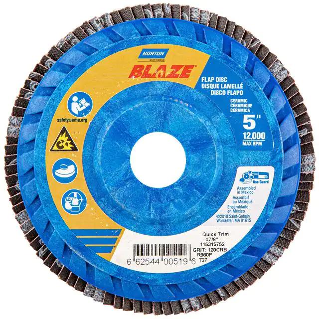 This is manufactured by Norton. The manufacturer part number is 66254400519. Its diameter is 5.00" (127.00mm). It is shipped in bulk. It has a classic orange colour. While its abrasive grit is 120. Abrasive Grade Info: medium. The product is widely employed in general purpose. It is manufactured from rugged ceramic alumina abrasive materials. The product is designated with the ear99 code number