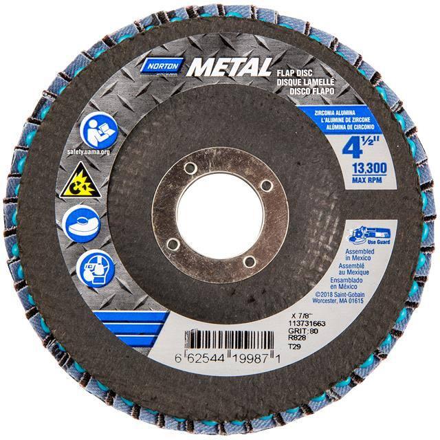 This is manufactured by Norton. The manufacturer part number is 66254419987. Its diameter is 4.50" (114.30mm). It is shipped in bulk. It has a classic blue colour. While its abrasive grit is 80. Abrasive Grade Info: coarse. The product is widely employed in general purpose. It is manufactured from rugged zirconia alumina abrasive materials. The product is designated with the ear99 code number