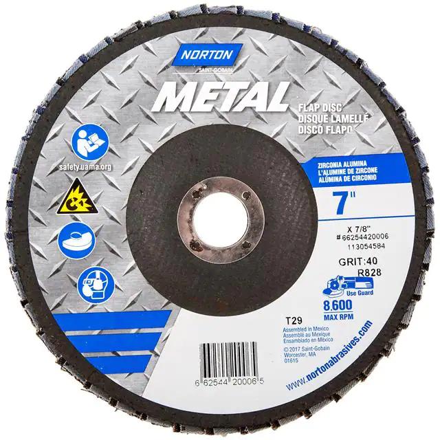 This is manufactured by Norton. The manufacturer part number is 66254420006. Its diameter is 7.00" (177.80mm). It is shipped in bulk. It has a classic blue colour. While its abrasive grit is p40. Abrasive Grade Info: extra coarse. The product is widely employed in general purpose. It is manufactured from rugged zirconia alumina abrasive materials. The product is designated with the ear99 code number