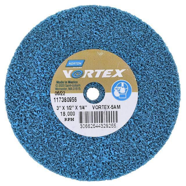 This is manufactured by Norton. The manufacturer part number is 66254432925. Its diameter is 3.00" (76.20mm). It is shipped in bulk. It has a classic blue colour. Abrasive Grade Info: medium. The product is widely employed in general purpose. It is manufactured from rugged aluminum oxide abrasive materials. The product is designated with the ear99 code number