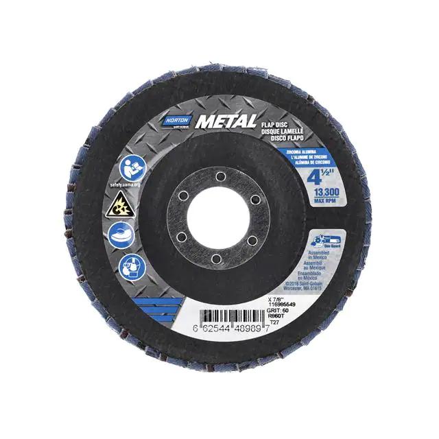 This is manufactured by Norton. The manufacturer part number is 66254448989. Its diameter is 4.50" (114.30mm). It is shipped in bulk. It has a classic blue colour. While its abrasive grit is p60. Abrasive Grade Info: coarse. The product is widely employed in general purpose. It is manufactured from rugged zirconia alumina abrasive materials. The product is designated with the ear99 code number