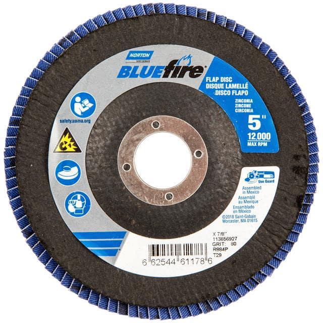 This is manufactured by Norton. The manufacturer part number is 66254461178. Its diameter is 5.00" (127.00mm). It is shipped in bulk. It has a classic blue colour. While its abrasive grit is p80. Abrasive Grade Info: coarse. The product is widely employed in general purpose. It is manufactured from rugged zirconia alumina abrasive materials. The product is designated with the ear99 code number