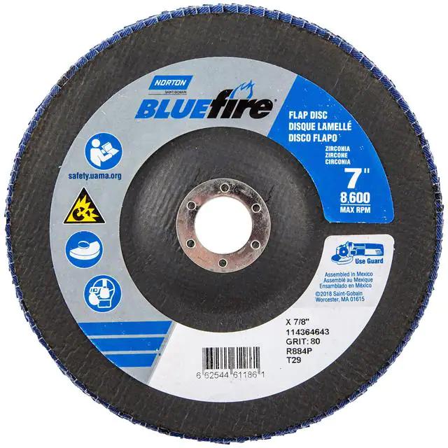 This is manufactured by Norton. The manufacturer part number is 66254461186. Its diameter is 7.00" (177.80mm). It is shipped in bulk. It has a classic blue colour. While its abrasive grit is p80. Abrasive Grade Info: coarse. The product is widely employed in general purpose. It is manufactured from rugged zirconia alumina abrasive materials. The product is designated with the ear99 code number