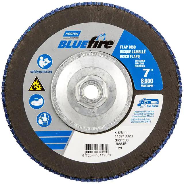 This is manufactured by Norton. The manufacturer part number is 66254461193. Its diameter is 7.00" (177.80mm). It is shipped in bulk. It has a classic blue colour. While its abrasive grit is p80. Abrasive Grade Info: coarse. The product is widely employed in general purpose. It is manufactured from rugged zirconia alumina abrasive materials. The product is designated with the ear99 code number