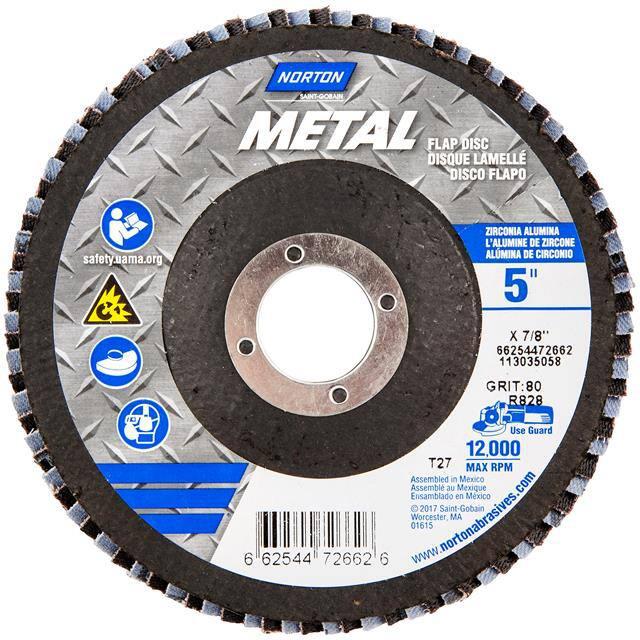 This is manufactured by Norton. The manufacturer part number is 66254472662. Its diameter is 5.00" (127.00mm). It is shipped in bulk. It has a classic blue colour. While its abrasive grit is 80. Abrasive Grade Info: coarse. The product is widely employed in general purpose. It is manufactured from rugged zirconia alumina abrasive materials. The product is designated with the ear99 code number