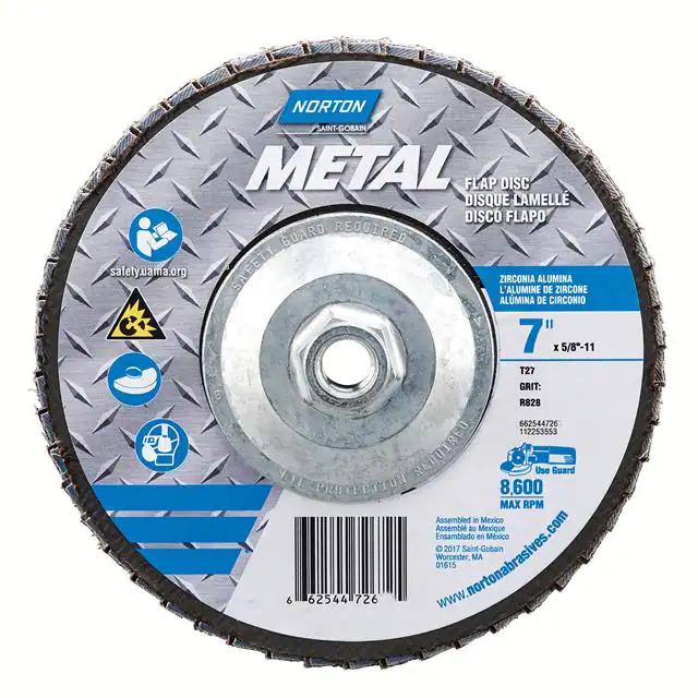 This is manufactured by Norton. The manufacturer part number is 66254472669. Its diameter is 7.00" (177.80mm). It is shipped in bulk. It has a classic blue colour. While its abrasive grit is p36. Abrasive Grade Info: extra coarse. The product is widely employed in general purpose. It is manufactured from rugged zirconia alumina abrasive materials. The product is designated with the ear99 code number