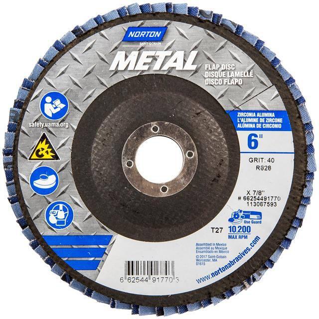 This is manufactured by Norton. The manufacturer part number is 66254491770. Its diameter is 6.00" (152.40mm). It is shipped in bulk. It has a classic blue colour. While its abrasive grit is p40. Abrasive Grade Info: extra coarse. The product is widely employed in general purpose. It is manufactured from rugged zirconia alumina abrasive materials. The product is designated with the ear99 code number