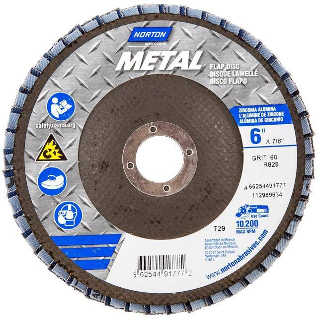 This is manufactured by Norton. The manufacturer part number is 66254491777. Its diameter is 6.00" (152.40mm). It is shipped in bulk. It has a classic blue colour. While its abrasive grit is p60. Abrasive Grade Info: coarse. The product is widely employed in general purpose. It is manufactured from rugged zirconia alumina abrasive materials. The product is designated with the ear99 code number