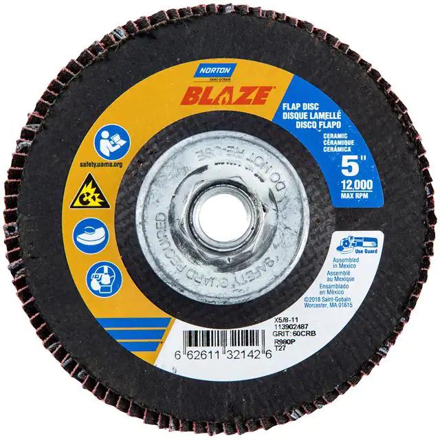 This is manufactured by Norton. The manufacturer part number is 66261132142. Its diameter is 5.00" (127.00mm). It is shipped in bulk. It has a classic orange colour. While its abrasive grit is 60. Abrasive Grade Info: coarse. The product is widely employed in general purpose. It is manufactured from rugged ceramic alumina abrasive materials. The product is designated with the ear99 code number