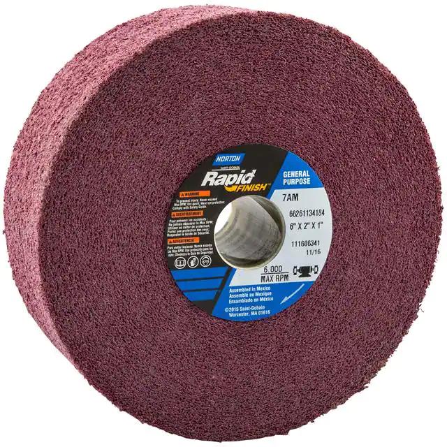 This is manufactured by Norton. The manufacturer part number is 66261134184. Its diameter is 6.00" (152.40mm). It is shipped in bulk. It has a classic maroon colour. Abrasive Grade Info: medium. Furthermore, the product is 2.00" (50.80mm) wide. The product is widely employed in general purpose. It is manufactured from rugged aluminum oxide abrasive materials. It comes in non-woven wheels configuration. The product is designated with the ear99 code number