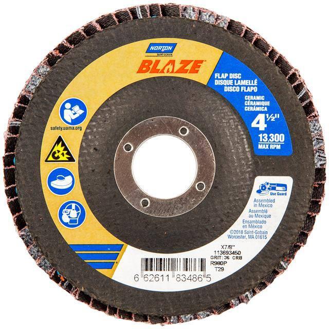 This is manufactured by Norton. The manufacturer part number is 66261183486. Its diameter is 4.50" (114.30mm). It is shipped in bulk. It has a classic orange colour. While its abrasive grit is 36. Abrasive Grade Info: extra coarse. The product is widely employed in general purpose. It is manufactured from rugged ceramic alumina abrasive materials. The product is designated with the ear99 code number
