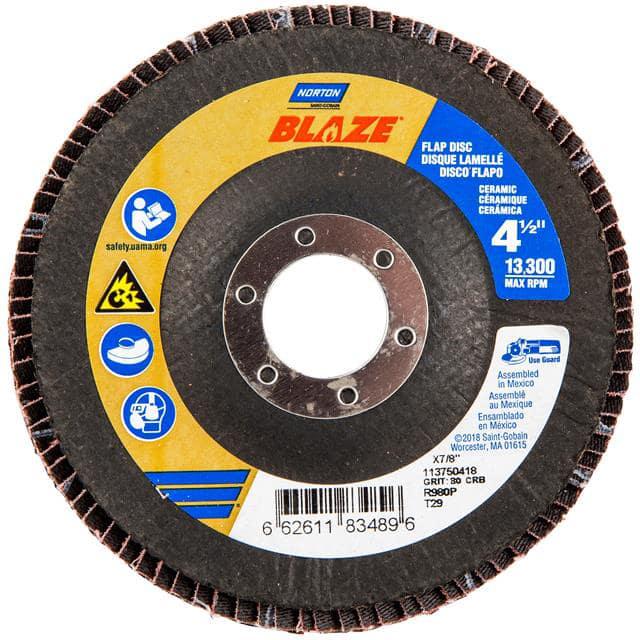 This is manufactured by Norton. The manufacturer part number is 66261183489. Its diameter is 4.50" (114.30mm). It is shipped in bulk. It has a classic orange colour. While its abrasive grit is 80. Abrasive Grade Info: coarse. The product is widely employed in general purpose. It is manufactured from rugged ceramic alumina abrasive materials. The product is designated with the ear99 code number