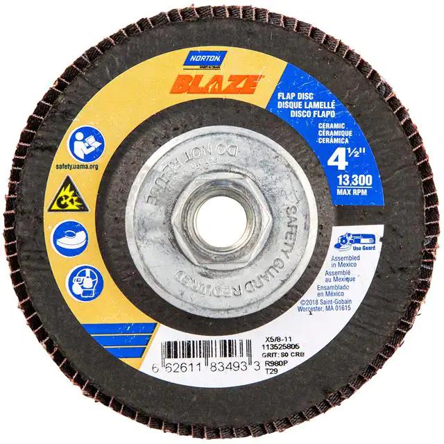 This is manufactured by Norton. The manufacturer part number is 66261183493. Its diameter is 4.50" (114.30mm). It is shipped in bulk. It has a classic orange colour. While its abrasive grit is 80. Abrasive Grade Info: coarse. The product is widely employed in general purpose. It is manufactured from rugged ceramic alumina abrasive materials. The product is designated with the ear99 code number