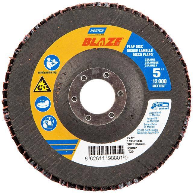 This is manufactured by Norton. The manufacturer part number is 66261190001. Its diameter is 5.00" (127.00mm). It is shipped in bulk. It has a classic orange colour. While its abrasive grit is 36. Abrasive Grade Info: extra coarse. The product is widely employed in general purpose. It is manufactured from rugged ceramic alumina abrasive materials. The product is designated with the ear99 code number